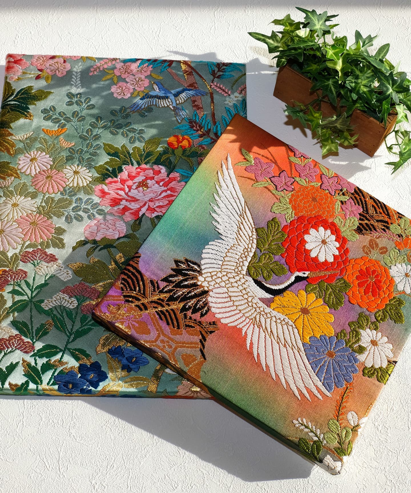 そんな思いから、一念発起して打掛や留袖、帯などを手作りでリメイクして販売しています。すべて一点もので他にはない唯一無二の商品たちです。